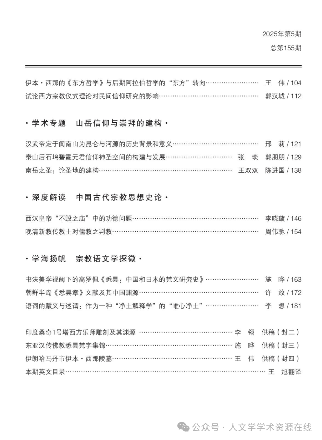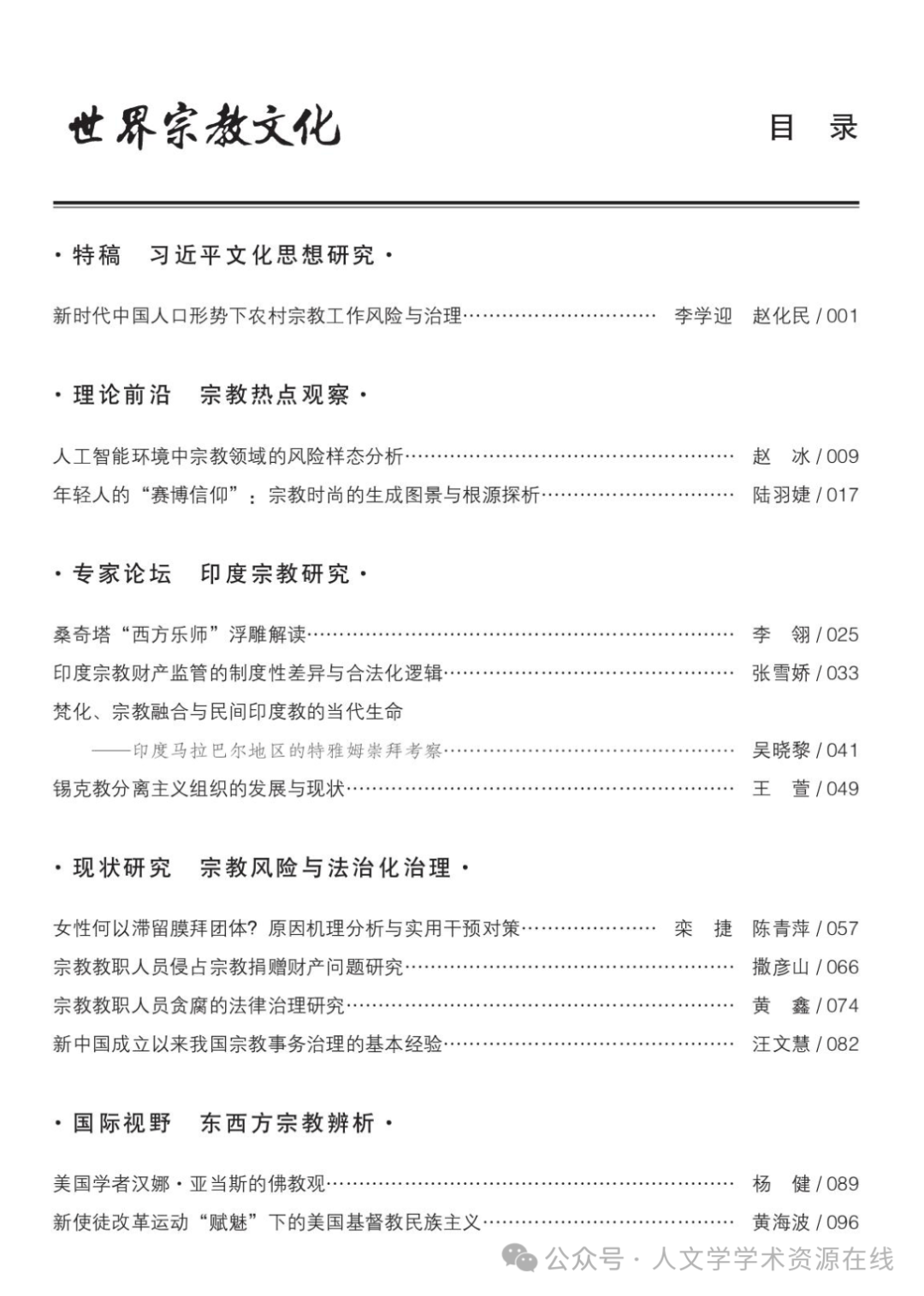 《世界宗教文化》2025年第5期目录