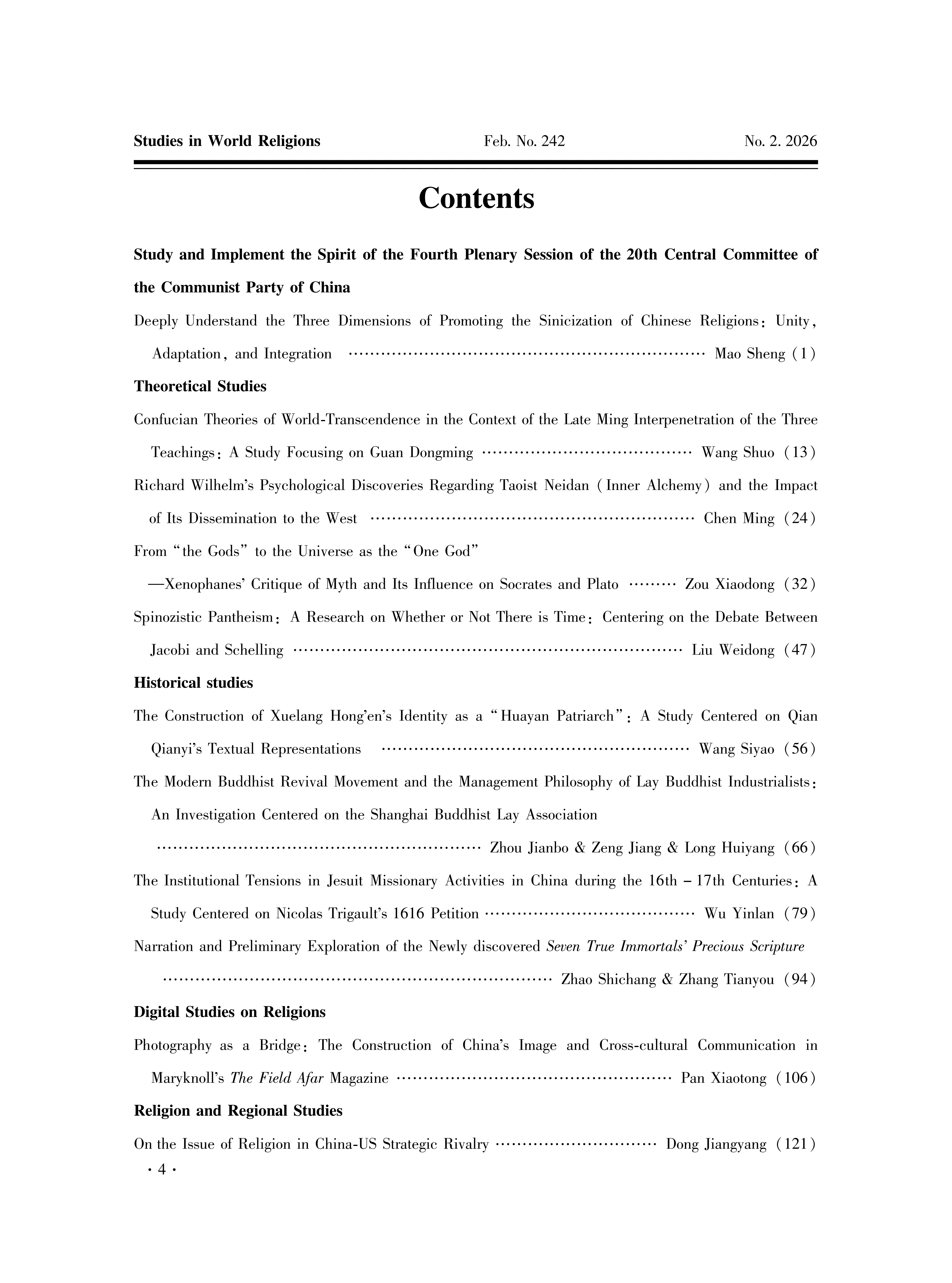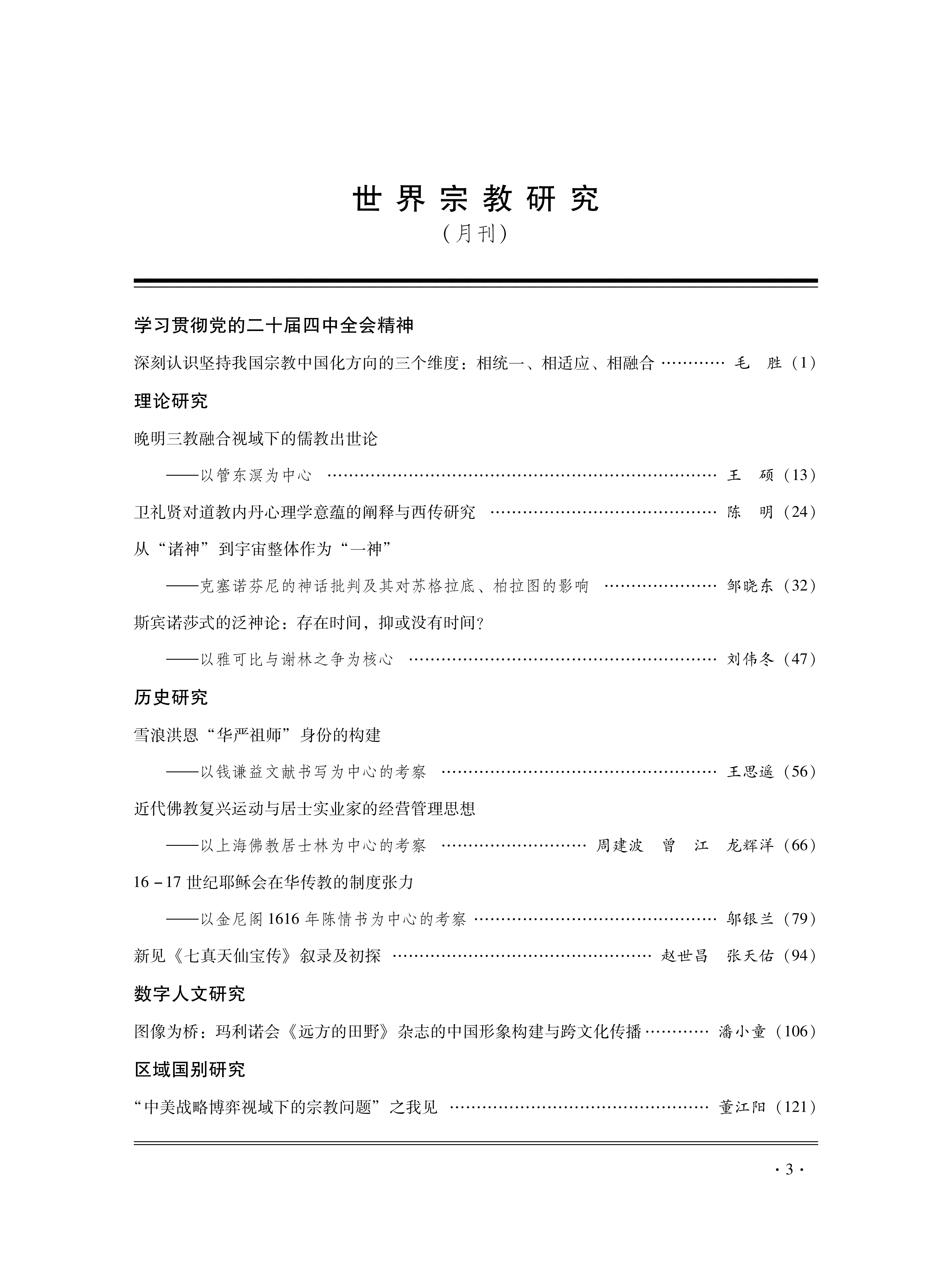 《世界宗教研究》2026年第2期目录