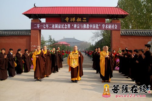今年是慧可大师圆寂1424年,慧可大师是“中国禅宗第一人”,称其为奠禅宗五叶之根基,开佛教中国化之征程也不为过。河北邯郸二祖寺是一座千年古寺,因慧可大师的舍利安奉于此而得名。为继祖师传承佛法之功业,护教护法之精神,值二祖慧可大师圆寂日之际,邯郸二祖寺特举行“山门奠基庆典仪式暨禅宗与佛教中国化研讨会”。