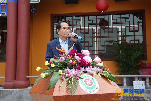 万行法师致辞时表示,东华禅寺自复建以来,就树立了东华家风:“信教先爱国、学佛先做人,修道先发心、对国要忠诚、对佛要虔诚、对人要真诚”。数十年来,一直秉持东华家风的精神布道弘法。建立爱国馆的初衷就是感恩怀念佛门里面的祖师大德们为法忘躯、为国忘躯的大无畏精神和慈悲济世的精神,借此精神号召现在的僧侣和广大信教群众们学佛莫忘众生,出家要感恩政府,热爱祖国。
