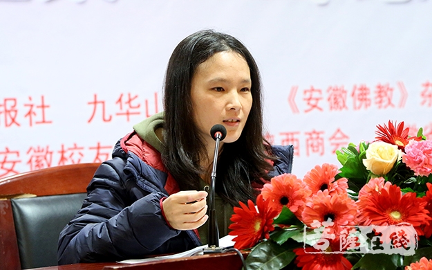 张乐教授解读了净慧长老对《信心铭》的现代阐释,她表示净慧长老对《信心铭》的解读不仅使三祖大师的思想在现代继续闪烁其光辉,而且对现代人安顿自己的身心,坚定自己的信仰也必然会产生非常有益的影响。
