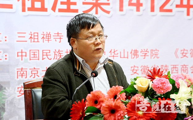 钱耕森教授对三祖僧璨其人做了简要论述,他表示僧璨的著作《信心铭》,是中国禅宗史上一篇重要的指导明心见性、开悟成佛的历史文献。他将有益于我们实现禅宗的唯一目标明心见性。