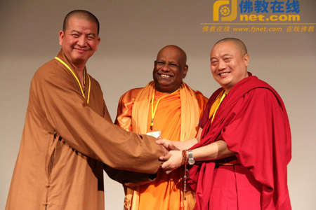 三大传承代表原始佛教三摩地学会负责人暨斯里兰卡总统国际宗教文化事务顾问强地玛法师说“为了21世纪佛教的继续进行,佛教的三种系统:南传、汉传和藏传佛教的四种佛弟子讨论研究各系统的教育方式、修行方法以及文化特色。其实现在人类已经提出了“地球村”之观念。三传弟子的合作要继续进行、互相了解、互相学习,培养包容心,修养慈悲心,增加智慧,利益众生。