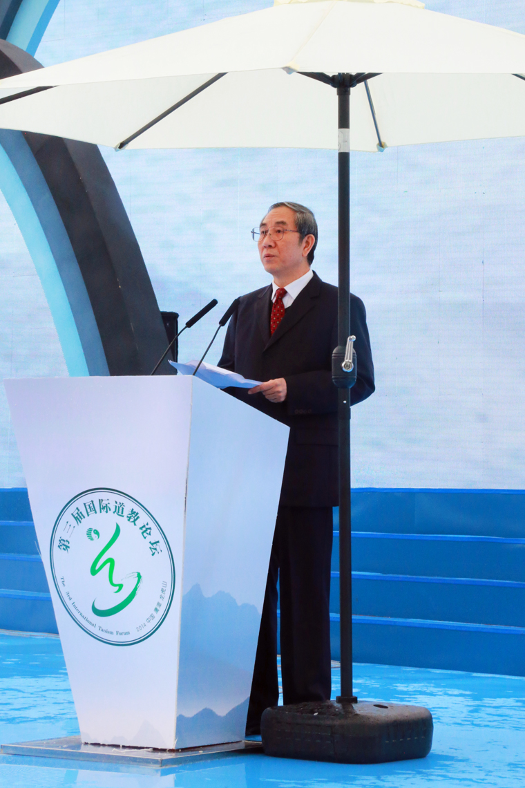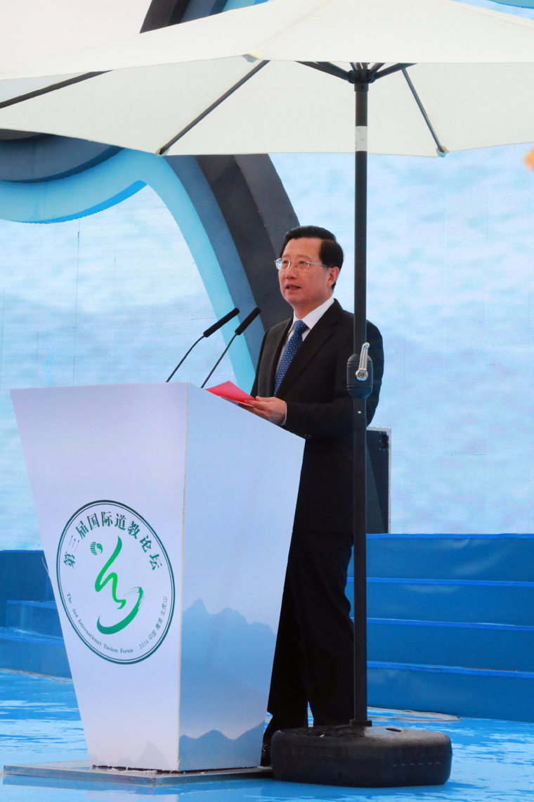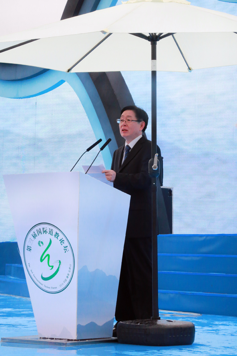全国政协副主席马飚应邀出席开幕式并致辞,对第三届国际道教论坛的召开表示热烈祝贺。他希望,海峡两岸暨港澳和海内外道教界能够以此次论坛为契机,加强交流,增进合作,携手努力,和衷共济,共同深入挖掘道教文化内涵,提升道教文化品位,推动新时代道教文化的创造性转化、创新性发展,为人类社会的和平、发展、合作贡献智慧。