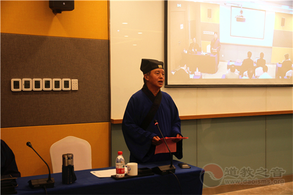 中国道教协会副会长、河北省道教协会会长董崇文道长代表中国道协、河北省道协发表讲话,他表示,道教界应凝聚全教共识,将教理教义规范化、系统化,加强逻辑性及修行方法的规范性。道教界要以信仰共同体的合力,发挥教务一体化的优势,树立社会各界对道教的信心,更好地服务于新时代的祖国建设,同时推动弘道阐教再上新台阶。