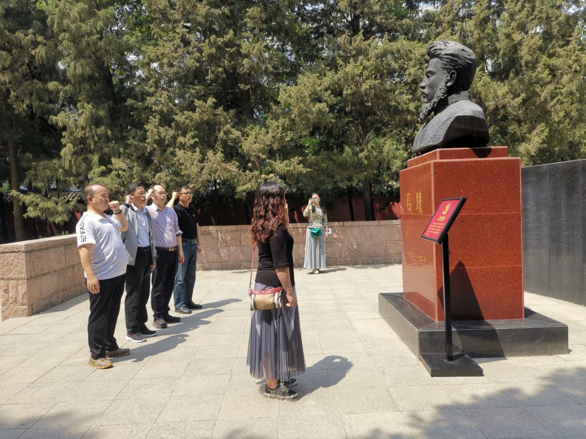 2021年5月19日上午,世界宗教研究所道教与民间宗教研究室党支部,在北京马骏烈士墓以及马骏烈士纪念馆开展“学党史,守初心,强党性”党史学习教育主题党日活动。支部党员王兵、李志鸿、刘志、林巧薇、李贵海,道教室主任汪桂平,博士后解加馨于参加了主题党日活动。