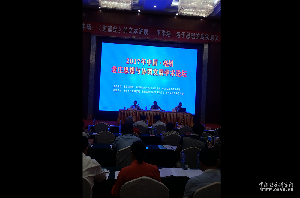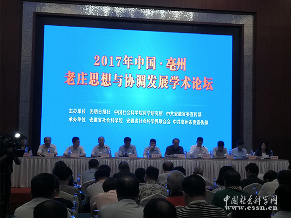 8月19日,2017年中国·亳州老庄思想与协调发展学术论坛在亳州市开幕,本届论坛由光明日报社、中国社会科学院哲学研究所、中共安徽省委宣传部主办,安徽省社会科学院、安徽省社会科学界联合会、亳州市委宣传部承办。来自全国高校、研究机构和媒体等单位近100位专家学者参加了论坛。研讨会以“老庄思想与协调发展”为主题,旨在传承老庄思想、弘扬优秀传统文化、助力协调发展。